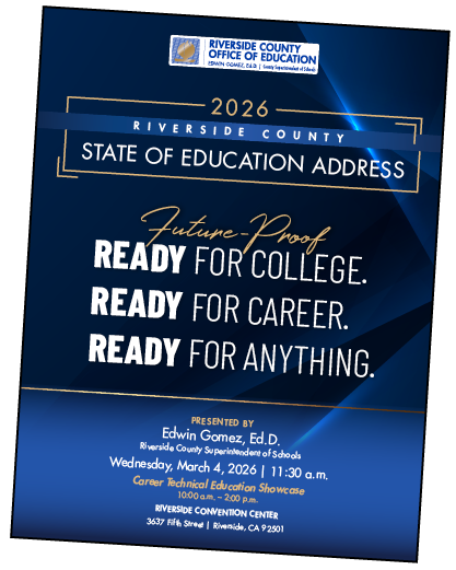 Join Riverside County Superintendent of Schools, Edwin Gomez, Ed.D., for the 2026 State of Education Address. Experience a dynamic and forward-looking message that spotlights innovation, celebrates success, and charts the path in shaping the future of education for all Riverside County students.